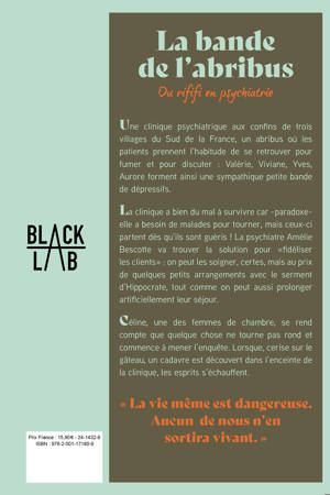 Une clinique psychiatrique aux confins de trois villages du Sud de la France, un abribus où les patients prennent l’habitude de se retrouver pour fumer et pour discuter lorsqu’il pleut : Valérie, Viviane, Yves, Aurore forment ainsi une sympathique petite bande de dépressifs… La clinique a bien du mal à survivre car - paradoxe - elle a besoin de malades pour tourner mais ceux-ci partent dès qu’ils sont guéris ! La psychiatre Amélie Bescotte va trouver la solution pour « fidéliser les patients » : et si, au lieu de les soigner, on créait ou on prolongeait leurs addictions… Au Diable le serment d’Hippocrate ! Céline, une des femmes de chambre, se rend compte que quelque chose ne tourne pas rond et commence à mener l’enquête. Lorsque, cerise sur le gâteau, un cadavre est découvert dans l’enceinte de la clinique, les esprits s’échauffent …