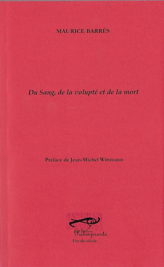 On connaît surtout Maurice Barrès pour ses convictions politiques, discutables a posteriori, hélas elles font de l’ombre à son œuvre littéraire, riche et importante, influente sur la génération d’écrivains tels que Montherlant, Mauriac, Aragon ou Bernanos. Il était d’ailleurs surnommé le Prince de la jeunesse, de cette jeunesse hantée par la guerre de 1870. Nous avons souhaité exhumer de l’oubli, ce recueil de nouvelles qui délivrent des impressions de voyages, effectués en Espagne et en Italie autour de 1892, d’un jeune auteur encore exalté par le Romantisme persistant de la fin du XIXe siècle. Le titre du recueil rappelle l’esthétisme décadent de cette époque dont les nouvelles reprennent les thématiques mais ce titre ne rend pas justice au traitement que M. Barrès en fait ; la mélancolie, les passions violentes et la contemplation esthétique demeurent pour lui un moyen de « cultiver son moi, non tant pour le parer que pour le fortifier : Du Sang, de la volupté et de la mort constitue la défense et l’illustration de l’égotisme » affirme J.-M. Wittmann dans sa préface.