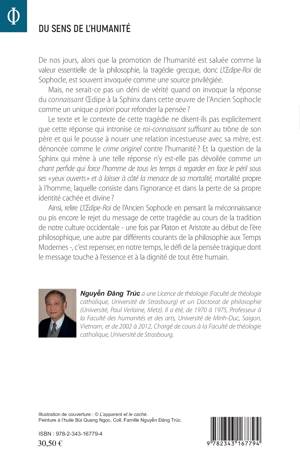 De nos jours, alors que la promotion de l'humanité est saluée comme la valeur essentielle de la philosophie, la tragédie grecque, donc L'OEdipe-Roi de Sophocle, est souvent invoquée comme une source privilégiée. Mais, ne serait-ce pas un déni de vérité ? Le texte et le contexte de cette tragédie ne disent-ils pas explicitement que ce qui intronise ce roi-connaissant suffisant au trône de son père, et ce qui le pousse à nouer une relation incestueuse avec sa mère, est dénoncé comme le crime originel contre l'humanité ? Ainsi, relire L'OEdipe-Roi de l'Ancien Sophocle en pensant le rejet du message de cette tragédie au cours de la tradition de notre culture occidentale, c'est repenser le défi de la pensée tragique dont le message touche à l'essence et à la dignité de tout être humain.