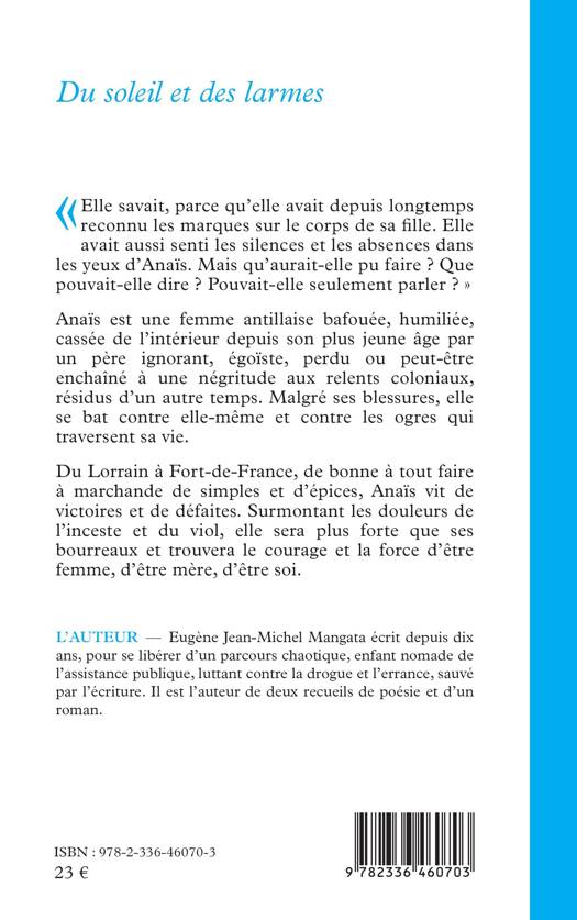 Elle savait, parce qu'elle avait depuis longtemps reconnu les marques sur le corps de sa fille. Elle avait aussi senti les silences et les absences dans les yeux d'Anaïs. Mais qu'aurait-elle pu faire ? Que pouvait-elle dire ? Pouvait-elle seulement parler ? Anaïs est une femme antillaise bafouée, humiliée, cassée de l'intérieur depuis son plus jeune âge par un père ignorant, égoïste, perdu ou peut-être enchaîné à une négritude aux relents coloniaux, résidus d'un autre temps. Malgré ses blessures, elle se bat contre elle-même et contre les ogres qui traversent sa vie. Du Lorrain à Fort-de-France, de bonne à tout faire à marchande de simples et d'épices, Anaïs vit de victoires et de défaites. Surmontant les douleurs de l'inceste et du viol, elle sera plus forte que ses bourreaux et trouvera le courage et la force d'être femme, d'être mère, d'être soi.