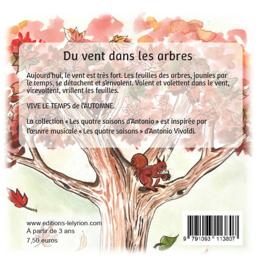L’automne est une saison où les couleurs sont très présentes. Avec le vent, les arbres colorés perdent leurs feuilles. Les parterres sont jonchés de feuilles jaunies ou rouges ou marron. Antonio ramasse ces feuilles pour en faire un herbier. L’automne est aussi la saison où l’on reste plus longtemps dans les maisons : le temps se rafraîchit et l’on prend plus soin de soi.