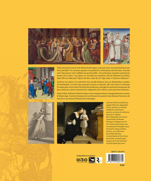 Si Anne de Bretagne est connue, qu'en est-il des duchesses qui l'ont précédée ? Si certaines passent à la postérité et deviennent des héroïnes, d'autres sont méconnues voire oubliées du grand public. Laurence Moal est allée à la recherche d'un monde disparu tout en démystifiant nombre de stéréotypes. Dans ce livre richement illustré, à travers des portraits vivants et nuancés, elle nous invite à remonter le temps pour entrer dans l'intimité des duchesses, partager les moments marquants de leur existence, mieux connaître leur religiosité, leur culture, ainsi que leurs émotions.
