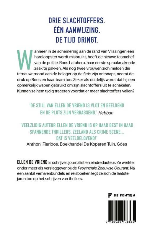 Wanneer in de schemering aan de rand van Vlissingen een hardloopster wordt misbruikt, heeft de nieuwe teamchef van de politie, Roos Latuheru, haar eerste spraakmakende zaak te pakken. Als nog twee vrouwen zich melden die ternauwernood aan de belager op de fiets zijn ontsnapt, neemt de druk op Roos en haar team toe. Zeker als duidelijk wordt dat hij een opmerkelijk wapen gebruikt om zijn slachtoffers uit te schakelen. Kunnen ze hem tijdig traceren voordat er meer slachtoffers vallen?