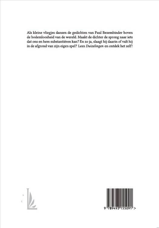 Als kleine vliegjes dansen de gedichten van Paul Bezembinder boven de bodemloosheid van de wereld. Maakt de dichter de sprong naar iets dat ons en hem substantiëren kan? En zo ja, slaagt hij daarin of valt hij in de afgrond van zijn eigen spel? Lees Duizelingen en ontdek het zelf!