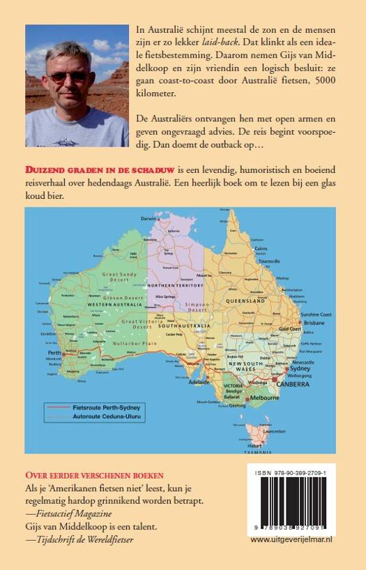 Duizend graden in de schaduw is een levendig, humoristisch en onderhoudend reisverhaal over hedendaags Australië. Een heerlijk boek om te lezen bij een glas koud bier.