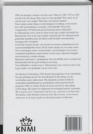 In 'Duizend jaar weer, wind, en water in de Lage Landen' geeft Jan Buisman een indrukwekkend en zeer gedetailleerd overzicht van het weer in de noordelijke en zuidelijke Nederlanden vanaf het jaar 763. Op grond van een enorme hoeveelheid zeer verschillende bronnen reconstrueert hij het weer van jaar tot jaar. Daarmee levert hij niet alleen het KNMI (dat het project wetenschappelijk begeleidt) belangrijke informatie, maar hij geeft iedere historisch geïnteresseerde een totaal nieuwe kijk op de geschiedenis. Er is immers niets dat het dagelijkse leven zo bepaalt en kleurt als het weer. Maar ook grote historische gebeurtenissen als de Slag bij Nieuwpoort en de Franse Revolutie zouden anders verlopen zijn bij ander weer.