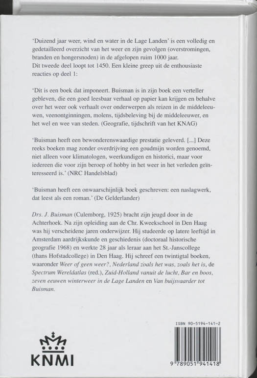 In 'Duizend jaar weer, wind, en water in de Lage Landen' geeft Jan Buisman een indrukwekkend en zeer gedetailleerd overzicht van het weer in de noordelijke en zuidelijke Nederlanden door de eeuwen heen.