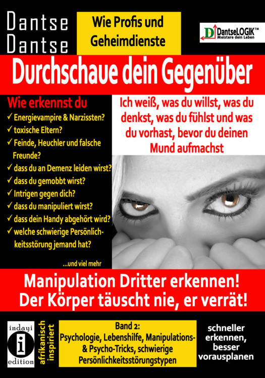 Das Buch der Erkenntnisse und vom Einschätzen von Situationen: Ich kenne deine Geheimnisse, denn du redest, auch wenn du nichts sagst!In Teil 2 der Buchserie geht es um die Bereiche Psychologie, Lebenshilfe und Persönlichkeitsstörungen. Du willst wissen, ob der Mensch gegenüber dir falsche Versprechungen macht oder was dein Chef oder deine Kollegen mit dir vorhaben? Du willst wissen, ob es jemand nur auf dein Geld abgesehen hat? Du willst mitbekommen, wenn dich jemand heimlich beobachtet? Du willst erkennen, ob dein Handy abgehört wird? Du willst erkennen, ob dich jemand überzeugen oder manipulieren will? Oder du willst vielleicht erkennen, ob dein Kind gemobbt wird oder unter Zwangsstörungen leidet?In diesem Band lernst du, alles dies auf den ersten Blick zu erkennen und die Zeichen die der andere aussendet richtig zu lesen. Denn der Körper schweigt nicht!Außerdem lernst du, schwierige Persönlichkeitstypen und Persönlichkeitsstörungen zu erkennen - bei dir selbst und bei anderen. Bist du paranoid? Leidest du unter Depressionen oder Borderline? Ist dein Nachbar eine psychopathische oder antisoziale Persönlichkeit? Ist dein Kollege passiv aggressiv oder narzisstisch? Bist du von abhängigen, ängstlichen und vermeidenden Personen umgeben? Leidest du selber unter einer Zwangsstörung? Schnell und treffsicher beantworten dir bestimmte Zeichen diese Fragen! Welche das sind, lernst du in diesem unschätzbar wertvollen Buch!Frühwarnsystem: Wie erkennst du Energievampire und Energieräuber?Wie erkennst du, dass du manipuliert wirst?Wie erkennst du, dass du an Depressionen leidest?Wie erkennst du deine Neider?Wie erkennst du, dass er/ sie lügt?Quick Diagnose: Erste Selbst-Coaching-Ratgeber-Hilfe für jeden! Profi-Geheimnisse für jeden!Auf der Hut, nie mehr der Dumme sein: Stärke deine Menschenkenntnis und dein Bauchgefühl, um Situationen blitzschnell zu erkennen und Handlungen vorauszuplanen - im Privaten wie im Beruflichen.Das beste System zur (Selbst-)spionage ist das Entschlüsseln von Körpersignalen. Diese Signale, die unbewusst von uns gesendet werden, können genauestens vorhersagen, wie die Lage in und um uns ist. Sogar manipulierendes Verhalten, das dich verwirren soll, kannst du so erkennen.Auch wenn wir nicht sprechen, reden wir viel. Unsere Körpermerkmale, unser Körperbefinden, unsere Körpersprache und unsere Gefühle verraten fast alles. Der Körper redet, redet immer, auch wenn wir schlafen. Mit dem Begriff Körper meine ich immer Leib und Seele. Als ich das erste Mal eine Klientin fragte, woran sie erkennt, wann sie ihren Eisprung hat, meinte sie, das könne man nicht wissen, es sei denn, man messe die Temperatur. Äußerliche Merkmale gäbe es nicht. Als ich ihr sagte, dass ich, wäre ich ihr Freund, dies erkennen könnte, lachte sie mich aus. So reagierten auch viele andere, Männer wie Frauen. Fachleute sind ebenfalls der Meinung, dass der Eisprung am besten durch technische Messungen zu erkennen ist. Aber nachdem meine Klientin meine Tipps angewendet hatte, sah sie, dass dies ebenso über genaue Beobachtung möglich ist. Es kann auch nicht anders sein, denn die Menstruation und der Eisprung sind zwei natürliche Vorgänge im Körper einer Frau. Der Eisprung ist Teil ihrer Weiblichkeit. Solche hormonellen Veränderungen des Körpers senden automatisch Signale, die durch Aufmerksamkeit entschlüsselt werden können. Voraussetzung hierbei ist, dass die Frau keine beeinflussenden Mittel einnimmt, die den Hormonspiegel stark negativ angreifen, wie zum Beispiel die Antibabypille.Auf dieselbe Art und Weise funktionieren alle Phänomene, die in uns und mit uns passieren. Durch reine Aufmerksamkeit können wir fast alle von ihnen genau erkennen. Mit ein bisschen Übung kannst du erkennen, was in dir und was in anderen Menschen los ist. Wir können uns und andere Menschen hervorragend ausspionieren, denn unser Körper und unsere Seele senden über alles Signale, was uns beeinflusst, auch unser Verhalten, unsere Ausstrahlung und unsere Reak