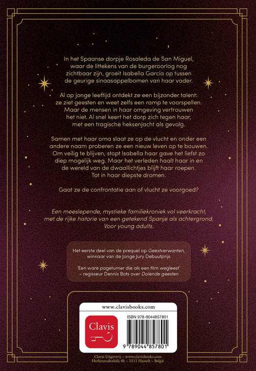 Samen met haar oma slaat ze op de vlucht en onder een andere naam proberen ze een nieuw leven op te bouwen. Om veilig te blijven, stopt Isabella haar gave het liefst zo diep mogelijk weg. Maar het verleden haalt haar in en de wereld van de dwaallichtjes blijft haar roepen. Tot in haar diepste dromen.