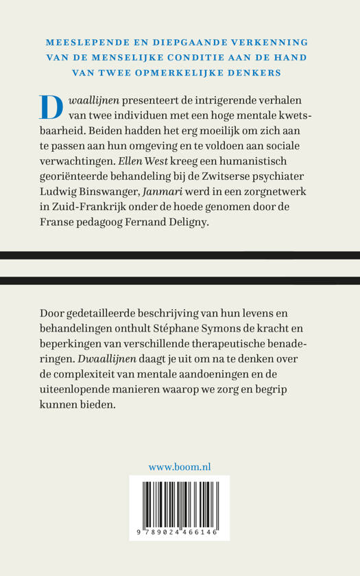 Met een scherp oog voor detail en een diep filosofisch inzicht onthult Symons de kracht en beperkingen van verschillende therapeutische benaderingen. Dwaallijnen daagt je uit om na te denken over de complexiteit van mentale aandoeningen en de uiteenlopende manieren waarop we zorg en begrip kunnen bieden.