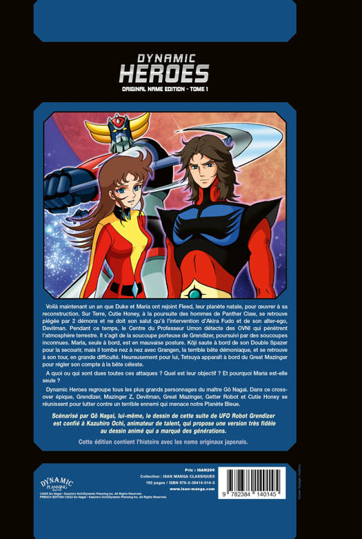 Voilà maintenant un an que Duke et Maria ont rejoint Fleed, leur planète natale, pour oeuvrer à sa reconstruction. Sur Terre, Cutie Honey, à la poursuite des hommes de Panther Claw, se retrouve piégée par 2 démons et ne doit son salut qu'à l'intervention d'Akira Fudo et de son alter-ego, Devilman. Pendant ce temps, le Centre du Professeur Umon détecte des OVNI qui pénètrent l'atmosphère terrestre. Il s'agit de la soucoupe porteuse de Grendizer, poursuivie par des soucoupes inconnues. Maria, seule à bord, est en mauvaise posture. Kôji saute à bord de son Double Spazer pour la secourir, mais il tombe nez à nez avec Grangen, la terrible bête démoniaque, et se retrouve à son tour, en grande difficulté. Heureusement pour lui, Tetsuya apparaît à bord du Great Mazinger pour régler son compte à la bête céleste. A quoi ou qui sont dues toutes ces attaques ? Quel est leur objectif ? Et pourquoi Maria est-elle seule ? La Original Name Edition reprend les noms originaux japonais.