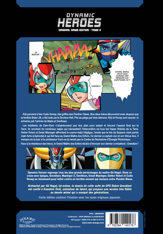 !! DERNIER TOME !! Voilà maintenant un an que Duke et Maria ont rejoint Fleed, leur planète natale, pour oeuvrer à sa reconstruction. Sur Terre, Cutie Honey, à la poursuite des hommes de Panther Claw, se retrouve piégée par 2 démons et ne doit son salut qu'à l'intervention d'Akira Fudo et de son alter-ego, Devilman. Pendant ce temps, le Centre du Professeur Umon détecte des OVNI qui pénètrent l'atmosphère terrestre. Il s'agit de la soucoupe porteuse de Grendizer, poursuivi par des soucoupes inconnues. Maria, seule à bord, est en mauvaise posture. Koji saute à bord de son Double Spacer pour la secourir, mais il tombe nez à nez avec Grangen, la terrible bête démoniaque, et se retrouve à son tour, en grande difficulté. A quoi ou qui sont dues toutes ces attaques ? Quel est leur objectif ? Et pourquoi Maria est-elle seule ? Une conclusion en apothéose pour cette aventure épique !!