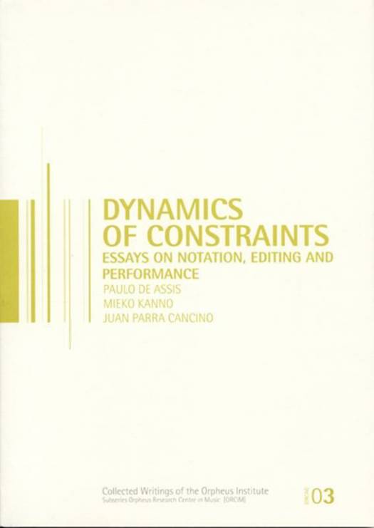 The three essays of Dynamics of Constraints express some fundamental issues addressed by ORCiM’s research group ‘the musician’s relation to notation’. Paulo de Assis argues that critical editions should generate critical users, advocating for a new kind of editor and performer; Mieko Kanno’s contribution reflects the rapid expansion of the use of electronics in contemporary music, stating that every new work creates an original compositional environment, where the performer’s movement-sound co-ordination is given a new significance, while Juan Parra Cancino points towards a kind of composition, where both the performing and the listening experience don’t aim to achieve a 'final' version of the piece ? an entity that might ever manifest.