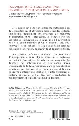 Cet ouvrage développe une approche méthodologique de la transition des objets communicants vers des systèmes intelligents, notamment les systèmes de recherche d'information (SRI) intelligents. Il s'appuie sur une articulation rigoureuse entre sciences de l'information et de la communication (SIC) et informatique, pour interroger les mécanismes d'aide à la décision dans des contextes d'innovation, de créativité et de compétitivité. Les travaux présentés analysent les conditions d'interopérabilité entre objets, processus et systèmes, en mettant l'accent sur la valorisation conjointe des données, des informations et des connaissances. L'originalité de la démarche réside dans la médiatisation structurée des données et de l'information, et la mise en oeuvre d'interactions intelligibles entre utilisateur et système intelligent, afin de favoriser la production de connaissances opérationnelles pour la décision.