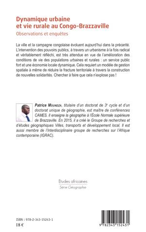 La ville et la campagne congolaise évoluent aujourd'hui dans la précarité. L'intervention des pouvoirs publics, à travers un urbanisme à la fois radical et véritablement réfléchi, est très attendue en vue de l'amélioration des conditions de vie des populations urbaines et rurales : un service public fort et une économie locale dynamique. Cela requiert un modèle de gestion spatiale à même de réduire la fracture territoriale à travers la construction de nouvelles solidarités.