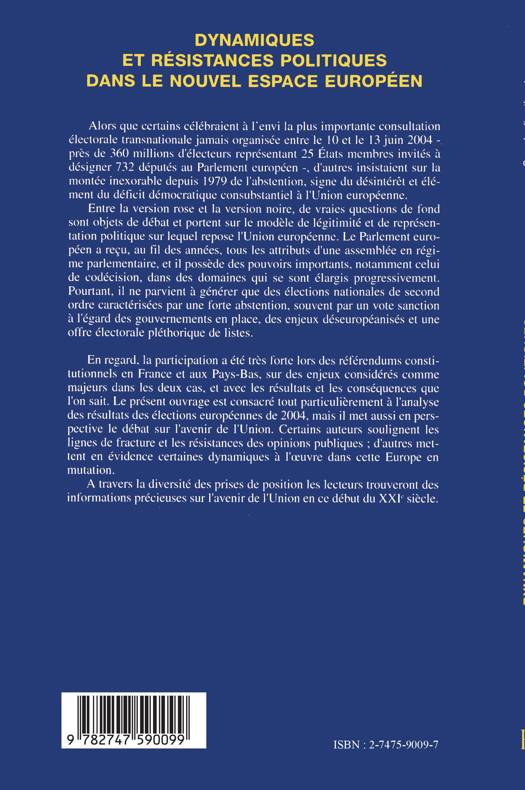 Alors que certains célébraient la plus importante consultation électorale transnationale jamais organisée en juin 2004, d'autres insistaient sur la montée inexorable de l'abstention. De vraies questions de fond sont objets de débat et portent sur le modèle de légitimité et de représentation politique sur lequel repose l'Union européenne. Le présent ouvrage est consacré à l'analyse des résultats des élections européennes de 2004, il met aussi en perspective le débat sur l'avenir de l'Union.