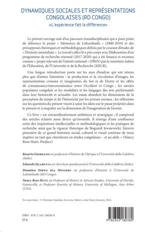 Cet ouvrage naît d'un parcours transdisciplinaire qui a pour point de référence le projet « Mémoires de Lubumbashi » (2000-2010) et des présupposés théoriques et méthodologiques définis par le courant d'études de « l'histoire immédiate ». Une longue introduction porte sur la production et la circulation d'images, les représentations croisées et imaginaires du Soi et de l'Autre et les effets de connaissance/méconnaissance entre Occident et Congo ; les savoirs populaires congolais et les modalités et les langages des arts performatifs dans leur historicité et actualité. Les essais abordent les dimensions de la perception du temps et de l'historicité par les acteurs sociaux.