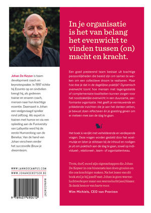Een goed presterend team bestaat uit krachtige persoonlijkheden die bereid zijn om samen te werken om een collectieve droom te realiseren. Maar hoe doe je dat in de dagelijkse praktijk? Dynamisch evenwicht toont hoe mensen met tegengestelde of complementaire kwaliteiten kunnen zorgen voor het noodzakelijke evenwicht in een duurzame, performante organisatie. Het geeft je vernieuwende en prikkelende inzichten die je aan het denken zetten, je bewust doen reflecteren én je goesting geven om er meteen mee aan de slag te gaan.