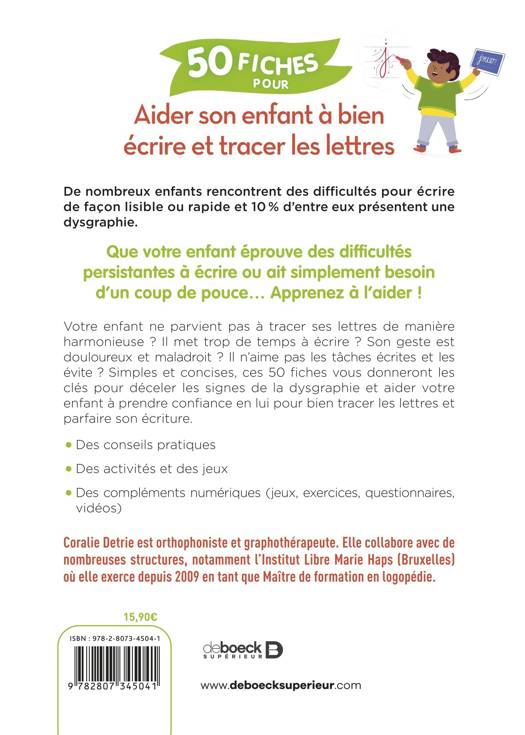 Simples et concises, ces 50 fiches vous donneront les clés pour déceler les signes de la dysgraphie et aider votre enfant à prendre confiance en lui pour bien tracer les lettres et parfaire son écriture.