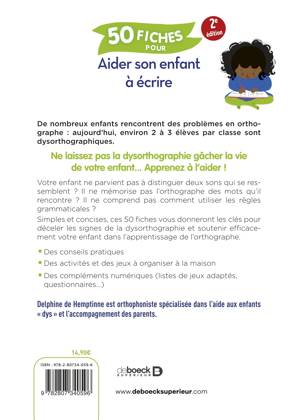 Votre enfant rencontre des difficultés pour écrire ? La grammaire, les accords et les dictées sont devenus sources d’angoisse ? Ce livre est une mine de conseils pratiques pour l’aider à améliorer son orthographe en toute sérénité.