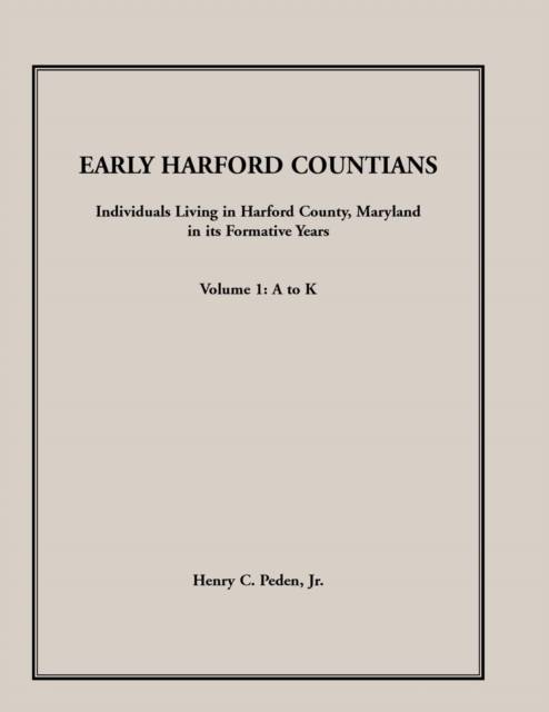 Originally published in 1993, we have split the original work into two parts and added a supplement containing the 1775 census and two hundreds (subdivisions) of the 1776 census (which were inadvertently omitted from the initial publication) and corrections. This represents a collection of data covering the period: 1773 (when the county was formed) through 1790. Volumes 1 and 2 have been extracted from the following: tax lists of 1774, 1776 (missing two Hundreds now contained in the supplement), 1778, 1783; censuses of 1776 and 1790; Dr. Archer's ledgers; orphans' court proceedings; family Bibles; estate administrations; registers of St. John's and St. George's; Quaker monthly meetings of Deer Creek and Little Falls; wills; court minutes; commercial licenses; survey certificates; land records index; marriage licenses; gleanings from various publications such as the Bulletin of the Historical Society of Harford County and other periodicals and histories; list of Non-Associators and Non-Enrollers in 1775; tombstone inscriptions; and other data drawn from the author's research and collections. This series contains over 30,000 entries.