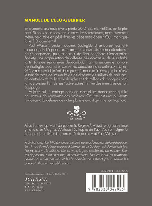 Paul Watson, pirate moderne, écologiste et amoureux des animaux depuis l'âge de onze ans, fut consécutivement cofondateur de Greenpeace, puis fondateur de Sea Shepherd Conservation Society, une organisation de défense des océans et de leurs habitants. Lors de ses années de combat, il a mis en oeuvre nombre de stratégies pour lutter contre les prédateurs des animaux marins. Grâce à ce véritable "art de la guerre" appliqué à l'écologie il a réussi le tour de force de sauver la vie de dizaines de milliers de baleines, de centaines de milliers de dauphins et de millions de phoques sans jamais blesser l'un de ses "adversaires" ni l'un des membres de son équipage.