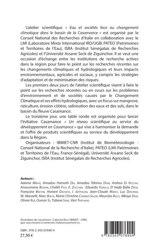 Ces actes de l'atelier scientifique "Eaux et sociétés face au changement climatique dans le bassin de la Casamance" est une occasion d'échanges entre les institutions de recherche actives dans la région pour faire le point sur les recherches récentes sur les changements climatiques et hydrologiques et leurs impacts environnementaux, agricoles et sociaux, y compris les stratégies d'adaptation et de minimisation des risques, avec focus sur mangrove, riziculture, érosion côtière, salinisation des eaux et des sols dans le bassin du fleuve Casamance.