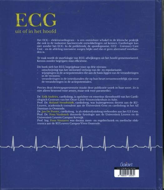 Dit boek stelt het ECG begrijpbaar voor op drie niveaus: - omschrijving van het vectorieel verloop van de- en repolarisatie; - wijzigingen in de actiepotentialen die aan de basis liggen van de veranderingen in de vectoren; - veranderingen in de ionenkanalen die op hun beurt verantwoordelijk zijn voor de veranderingen in de actiepotentialen.