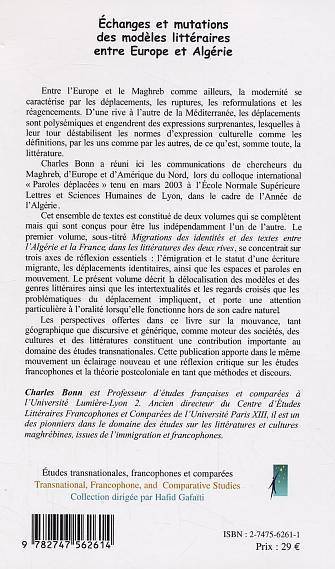 Dans ce second volume, qui réunit les communications du colloque international : "Paroles Déplacées", qui eu lieu à Lyon, en mars 2003, l'auteur a choisit de décrire le délocalisation des modèles et des genres littéraires ainsi que les intertextualités et les regards croisés que les problématiques du déplacement impliquent, et porte une attention particulière à l'oralité lorsqu'elle fonctionne hors de son cadre naturel. Cette publication apporte dans le même mouvement, un éclairage nouveau et une réflexion critique sur les études francophones et la théorie postcoloniale en tant que méthodes et discours.