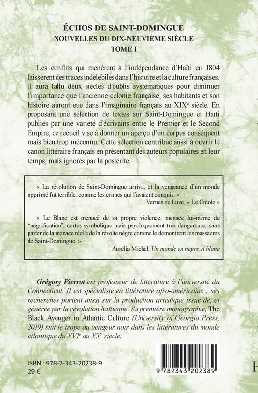 Les conflits qui menèrent à l'indépendance d'Haïti en 1804 laissèrent des traces indélébiles dans l'histoire et la culture françaises. Il aura fallu deux siècles d'oublis systématiques pour diminuer l'importance que l'ancienne colonie française, ses habitants et son histoire auront eue dans l'imaginaire français au XIXe siècle. En proposant une sélection de textes sur Saint-Domingue et Haïti publiés par une variété d'écrivains entre le Premier et le Second Empire, ce recueil vise à donner un aperçu d'un corpus conséquent mais bien trop méconnu.