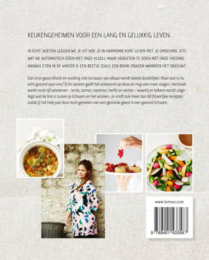 Keukengeheimen voor een lang en gelukkig leven In echt (w)eten leggen we je uit hoe je in harmonie kunt leven met je omgeving. Iets wat we automatisch doen met onze kledij, maar vergeten te doen met onze voeding. Ananas eten in de winter is een beetje zoals een bikini dragen wanneer het sneeuwt... Dat onze gezondheid en voeding niet los staan van elkaar wordt steeds duidelijker. Maar wat is nu echt gezond voor ons? Echt (w)eten geeft het antwoord op deze en nog veel meer vragen. Het boek werkt rond vijf seizoenen - lente, zomer, nazomer, herfst en winter -– waarbij er telkens wordt uitgelegd wat de link is tussen je lichaam en het seizoen. Je vindt ook meer dan 60 (h)eerlijke recepten zodat jij het hele jaar door kunt genieten van een gezonde geest in een gezond lichaam.