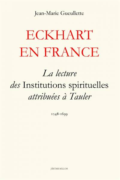Peu de temps après la mort d'Eckhart, ses Entretiens spirituels sont utilisés par un disciple de Ruusbroeck qui le traduit en néerlandais et en intègre une grande partie dans son Traité des douze vertus. Il y mêle le texte eckhartien à des considérations de son cru, nettement marquées par le propos pénitentiel et ascétique de la devotio moderna. Ce traité connaîtra une certaine diffusion, en particulier parce qu'il est très vite considéré comme une oeuvre authentique de Ruusbroeck. Au début du XVIe siècle, il est lu dans un milieu spirituel qui associe des béguines du Brabant, et les chartreux de Cologne ; les uns et les autres l'intègrent à leur tour dans des ensembles plus vastes qui peu à peu vont former le texte des Institutions spirituelles. Celles-ci seront placées par Pierre Canisius dans son édition des oeuvres de Tauler en allemand, publiée en 1543, avant son entrée chez les jésuites. Cette première édition sera traduite en latin par son ami le chartreux Laurent Surius en 1548. À cette date, la mystique rhénane, dans des textes majeurs que sont les Entretiens d'Eckhart et les sermons de Tauler devient pour Ja première fois accessible à des lecteurs non germanophones. Très vite cette édition latine des Opéra Tauleri sera connue dans toute l'Europe et donnera lieu à des traductions. C'est ainsi que les Institutions spirituelles sont lisibles en français dès 1587. Elles seront l'un des textes spirituels qui sera le plus souvent édité au XVIIe siècle, dans trois traductions différentes.