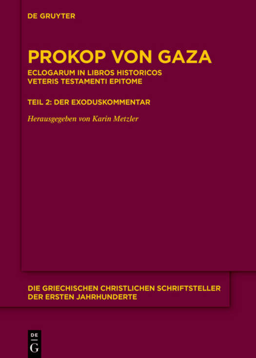 Prokop von Gaza (ca. 465/470-526/530) verfasste einen großen Kommentar zu den ersten Geschichtsbüchern des Alten Testaments (CPG 7430, bisher fälschlich als Catena in Octateuchum oder Catena in Heptateuchum bezeichnet). Hier wird die kritische Edition des zweiten Teils, des Exoduskommentars, vorgelegt; sie enthält zum ersten Mal den vollständigen griechischen Text.