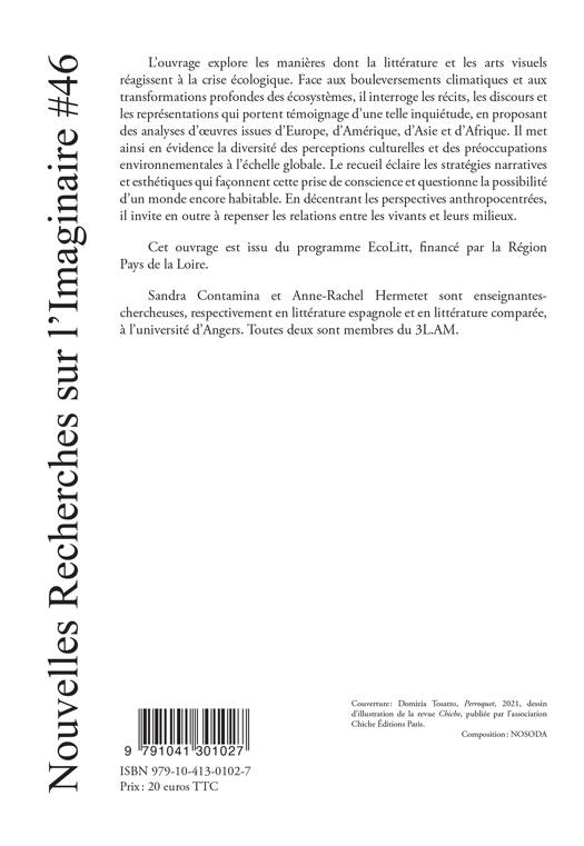L’ouvrage explore les manières dont la littérature et les arts visuels réagissent à la crise écologique. Face aux bouleversements climatiques et aux transformations profondes des écosystèmes, il interroge les récits, les discours et les représentations qui portent témoignage d’une telle inquiétude, en proposant des analyses d’oeuvres issues d’Europe, d’Amérique, d’Asie et d’Afrique. Il met ainsi en évidence la diversité des perceptions culturelles et des préoccupations environnementales à l’échelle globale. Le recueil éclaire les stratégies narratives et esthétiques qui façonnent cette prise de conscience et questionne la possibilité d’un monde encore habitable. En décentrant les perspectives anthropocentrées, il invite en outre à repenser les relations entre les vivants et leurs milieux.