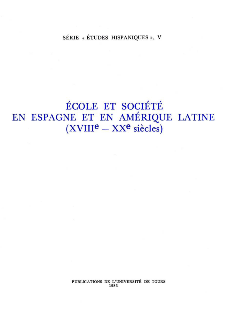 Un certain nombre d'hispanistes et d'américanistes se proposent de réfléchir à l'enseignement et à l'éducation en Espagne et en Amérique Latine à travers les siècles. Plus précisément, l'école primaire et pré-professionnelle a été retenue de préférence à l'enseignement universitaire ou secondaire mieux connus.