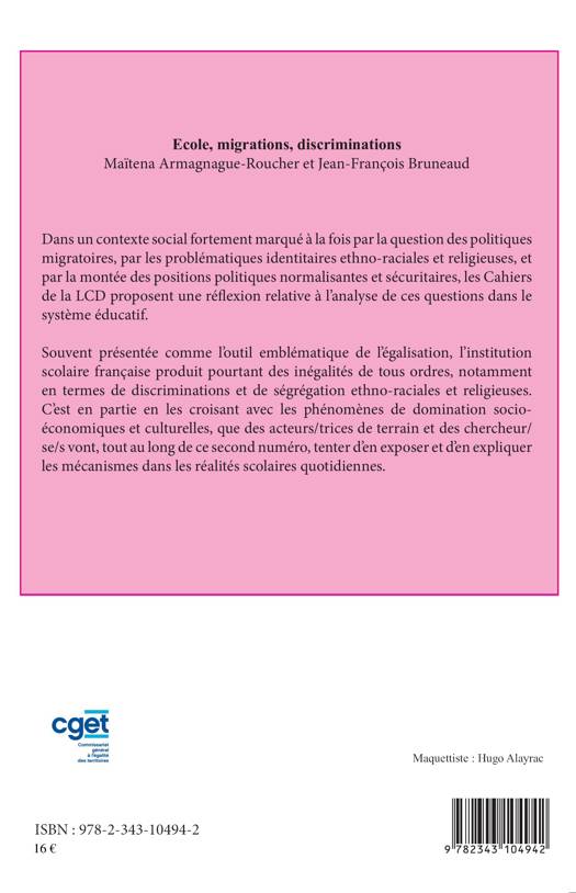 Dans un contexte social fortement marqué par les problématiques migratoires, identitaires, ethnoraciales, religieuse et sécuritaires, ce cahier propose de repenser ces questions dans le système éducatif. Souvent présentée comme l'outil emblématique de l'égalisation, l'institution scolaire française produit pourtant des inégalités et des discriminations. En les croisant avec les phénomènes de domination socio-économiques et culturelles, acteurs de terrain et chercheurs vont en exposer et en expliquer les mécanismes dans les réalités scolaires quotidiennes.