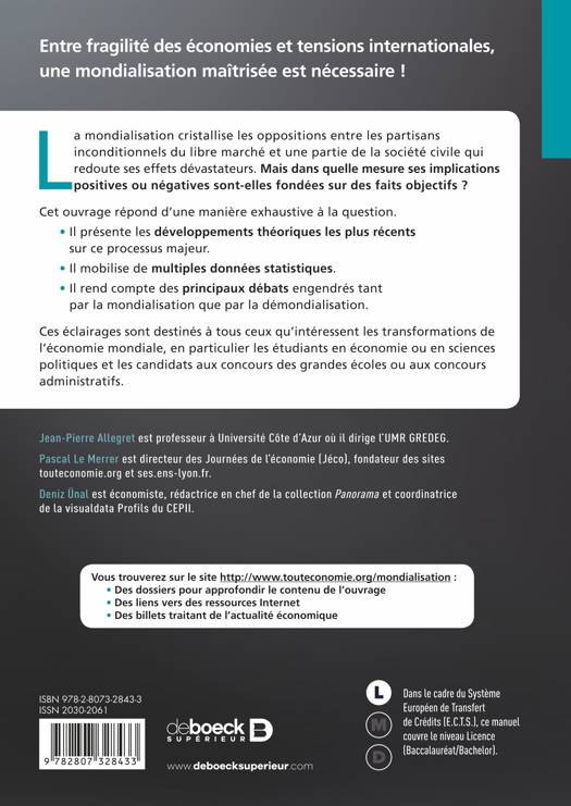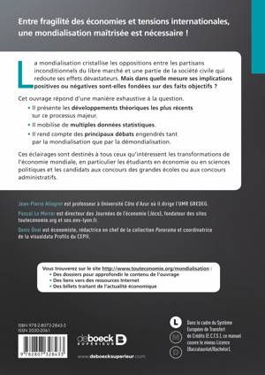 • Il rend compte des principaux débats engendrés tant par la mondialisation que par la démondialisation.