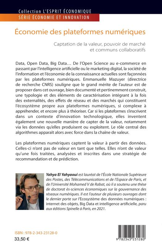 Data, Open Data, Big Data : de l’Open Science au e-commerce en passant par l’intelligence artificielle ou le marketing digital, la société de l’information et l’économie de la connaissance actuelles sont façonnées par les plateformes numériques. Emmanuelle Mazuyer (directrice de recherche CNRS) souligne que le grand mérite de l’auteur est de proposer une typologie et des éléments de caractérisation intégrant à la fois des externalités, des effets de réseau et des marchés qui constituent l’écosystème propre aux plateformes numériques, si complexe à appréhender. Car si les plateformes s’inscrivent dans un contexte d’innovation technologique, elles inventent également une nouvelle manière de capter de la valeur, notamment via les données qu’elles produisent ou exploitent. Le rôle central des algorithmes apparaît alors avec force dans la chaîne de valeur. Les plateformes numériques captent la valeur à partir des données. Celles-ci n’ont pas de valeur qu’une fois traitées, analysées et inscrites dans une stratégie de recommandation et de prédiction.