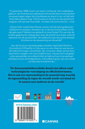 Het boek dat het maatschappelijk-economische debat de volgende maanden zal domineren. 15 september 2008, kwart voor twee 's ochtends. Het ondenkbare gebeurt: de Amerikaanse zakenbank Lehman Brothers moet bescherming aanvragen tegen zijn schuldeisers en sleurt in zijn val het hele financiële systeem mee. Ook Europa en de rest van de wereld ontsnappen niet aan een financiële - en later ook economische - crisis. Vijf jaar later maakt Geert Noels, samen met de belangrijkste betrokkenen en experts, de balans op. Is de economie stilaan uit het dal gekropen? Hebben we geleerd uit onze fouten? En wat met de andere gigantische uitdagingen waar de wereld voor staat, zoals de opkomst van de groeilanden, de zoektocht naar duurzame energiebronnen en de opwarming van de aarde? Aan de hand van zes belangrijke schokken legt Geert Noels in Econoshock 2.0 haarfijn uit hoe we er nu voor staan en wat we van de toekomst mogen verwachten. Zijn conclusie: alleen als we duurzaam leren omgaan met onze hulpbronnen, nieuwe technologieën volop aanwenden en authenticiteit en behoud van onze welvaart verkiezen boven schuldgedreven, onhoudbare groei, zijn we in staat om de crisis te overwinnen. Bekijk hier de trailer van De Canvasreeks