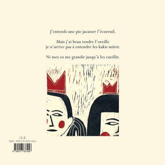 J'entends une pie jacasser l'écureuil. Mais j'ai beau tendre l'oreille je n'arrive pas à entendre les kakis mûrir. Ni mes os me grandir jusqu'à les cueillir. Poésie du son et de l'écoute...
