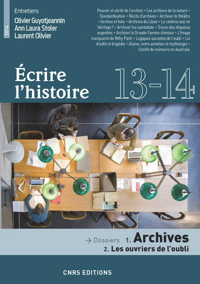 Les " ouvriers de l'oubli ", titre du dossier secondaire, explore la face sombre de l'archive, en particulier les usages politiques de l'oubli. Cette réflexion souligne aussi comment, dans sa dimension narrative, l'écriture de l'histoire contribue à l'oubli. Pour raconter, il faut trier, choisir dans l'archive et aussi construire l'intérêt en écartant d'autres histoires possibles.