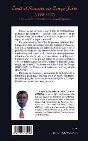 L'objet de cet ouvrage s'inscrit dans la problématique générale des rapports - souvent conflictuels - entre l'organisation des médias de masse et le pouvoir politique, au sein d'un espace national. L'auteur interroge les rôles du pouvoir politique dans l'apparition et le développement des modèles d'organisation de la communication écrite au Congo-Zaïre, de la période coloniale à la postcolonie, soit sur un siècle.