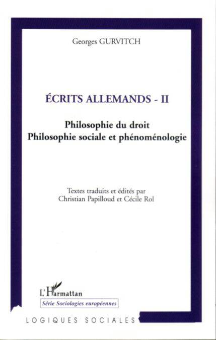 Ce second volume des écrits allemands de Georges Gurvitch (1894-1965) comporte les travaux que l'auteur a dédiés à la philosophie du droit, la philosophie sociale ainsi qu'à la phénoménologie qu'il fut l'un des premiers à introduire en France. Ces textes révèlent la permanence des thématiques fichtéennes et plus généralement de la tradition allemande dans les travaux de Gurvitch. Ils attestent également de son effort pour établir une synthèse critique de traditions philosophiques, au profit d'une science de la morale pratique dont il cherchait les sources européennes.