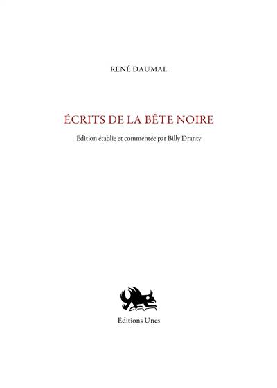 Ces trois textes inédits de René Daumal ont paru respectivement dans les troisième, quatrième, puis huitième (et ultime) livraisons d’un éphémère mensuel de 8 pages nommé La Bête noire (1935-1936), imaginé par Marcel Moré, Roger Vitrac, Michel Leiris, Raymond Queneau et Jacques Baron, et qui a compté Antonin Artaud ou encore Le Corbusier parmi ses contributeurs. La revue, à peine née, est l’objet de vives tensions entre plusieurs grandes figures du milieu littéraire, et cristallise les divisions de l’avant-garde, notamment entre les surréalistes et leurs dissidents. Georges Bataille refuse avec véhémence d’y participer, sans parler de l’ombre menaçante d’un André Breton soucieux de préserver son territoire. Dès le deuxième numéro, Leiris et Queneau eux-mêmes souhaitent la disparition de La Bête Noire qu’ils ont conçue comme une forme d’union sacrée ! Daumal rentre pour sa part d’un séjour aux États-Unis, Le Grand Jeu est derrière lui, il retrouve brièvement Paris et ses amis avec ennui, voire une forme de dégoût. Il s’installe à Genève et ces querelles de chapelles sont loin de ses préoccupations. Mais il ressent la décrépitude du milieu poétique et il se fait l’écho rageur, désenchanté de cette fin de cycle à laquelle il semble adresse un « au-revoir ! » cinglant dans ces textes corrosifs et lucides, qui évoquent une société triste, vide, qui a sombré dans le bavardage et qu’il serait urgent de désinfecter. L’esprit moderne, déchu, consume en 1935 ses restes de truquages et de combines, les déceptions vis-à-vis des promesses qu’il n’a pas su tenir finissent de l’anéantir, et l’époque, de passion et d’action, politiquement tendue vers le pire – dans laquelle les intellectuels se démènent, « contre-attaquent » ou pataugent – accélère cette faillite, la leur.