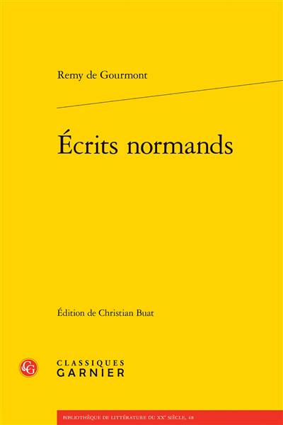 Le titre, Écrits normands, peut surprendre tant s'impose dans le paysage littéraire l'image d'un Gourmont, « ours à écrire » vivant reclus dans sa tour d'ivoire du 71, rue des Saints-Pères. Figure de l'intellectuel parisien, il ne laissa cependant d'être farouchement attaché à ses racines normandes. Aussi le descendant du mythique roi danois Gormon, qui, dans sa jeunesse, s'était proposé de mettre la Normandie en coupe réglée et d'en tirer une demi-douzaine de romans, réalisera-t-il son programme, en écrivant romans (Merlette, Patrice, Le Songe d'une femme, Un coeur virginal), poèmes (Simone), épilogues et promenades littéraires ou historiques, inspirés par la Normandie. Viking des lettres, Gourmont fut aussi « Paysan de Paris ».