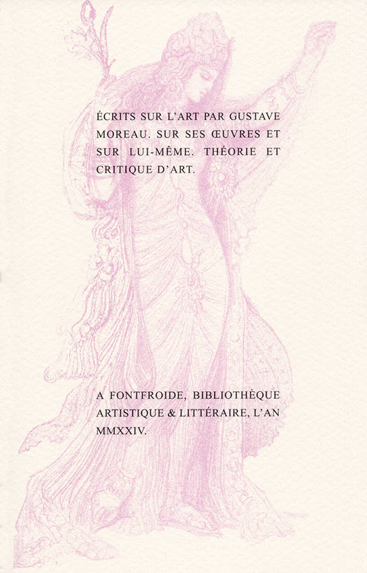 La première partie du volume rassemble les écrits du peintre sur lui-même et sa propre œuvre, toute imprégnée par les mythes antiques et les récits bibliques ; la seconde, ceux du Moreau théoricien et critique d’art.