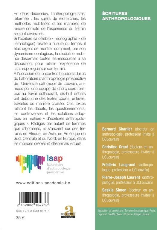 En deux décennies, l'anthropologie s'est réformée : les sujets de recherches, les méthodes mobilisées et les manières de rendre compte de l'expérience du terrain se sont diversifiés. Si l'écriture (la célèbre « monographie » de l'ethnologue) résiste à l'usure du temps, il était urgent de montrer comment, par son dynamisme contagieux, la discipline mobilise désormais toutes les ressources à sa disposition, pour relater l'expérience de l'anthropologue sur son terrain.