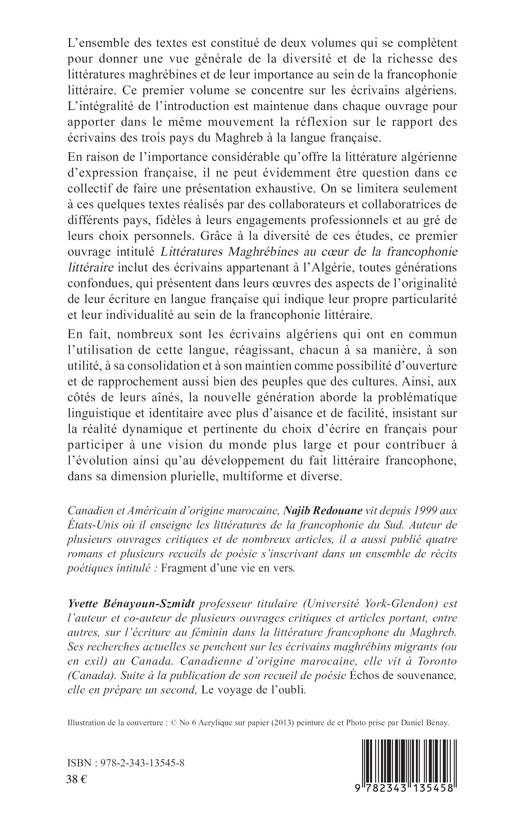 Cet ouvrage est le premier volume d'une étude consacrée à la diversité et à la richesse des littératures maghrébines et à leur importance au sein de la francophonie littéraire. L'objectif est de faire ressortir les éléments caractéristiques des littératures du Maghreb qui se distinguent dans le champ littéraire francophone par l'expression de différentes réalités socio-politiques spécifiques à chacun des pays du Maghreb. L'ensemble des textes qui constituent ce premier volume se concentre sur les écrivains algériens, toutes générations confondues, qui présentent dans leurs oeuvres des aspects de l'originalité de leur écriture en langue française.