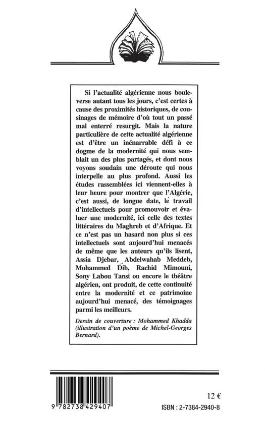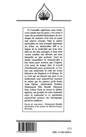 Ce livre montre que l'Algérie, c'est aussi, de longue date, le travail d'intellectuels pour promouvoir et évaluer une modernité, ici celle des textes littéraires du Maghreb et de l'Afrique. Et ce n'est pas non plus un hasard si ces intellectuels sont aujourd'hui menacés de même que les auteurs qu'ils lisent, Assia Djebar, Abdelwahab Meddeb, Mohammed Dib, Rachid Mimouni, Sony Labou Tansi ou encore le théâtre algérien, ont produit parmi les meilleurs.
