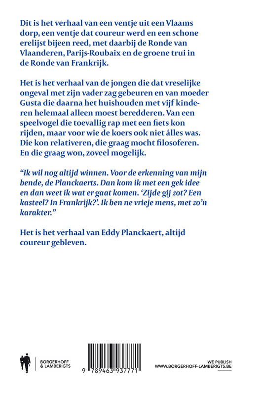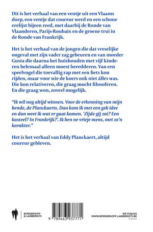 Bovenal is hij een verhalenverteller over de koers en zijn eigen wedervaren op en naast de fiets. Met een lach en een traan, met sterke anekdotes en pittige meningen. De familiemens Eddy Planckaert is dezelfde als de coureur Eddy Planckaert: boeiend, geestig en levenswijs.